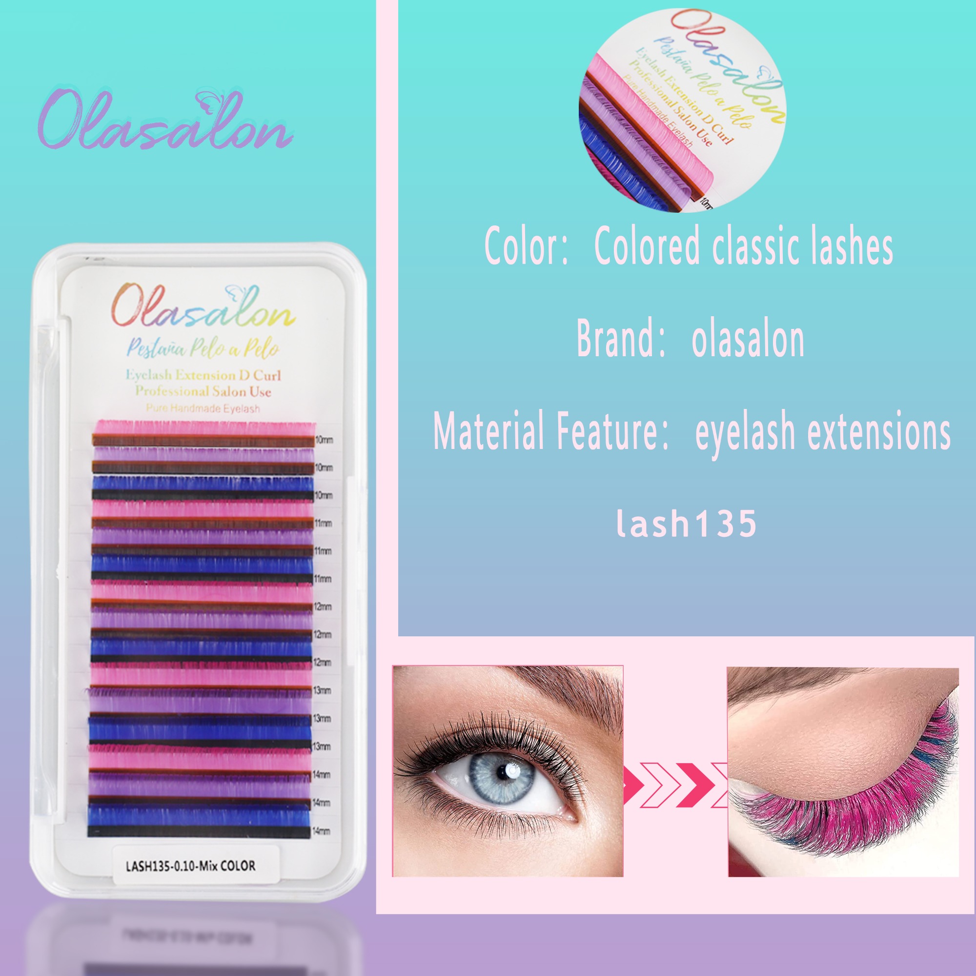 ღEyelash color: after special processing and production of dye, the color is bright and will not fade. We have3 colors to choose from: red, blue and purple. If you like dramatic and romantic style, this eyelash will be perfect for you.