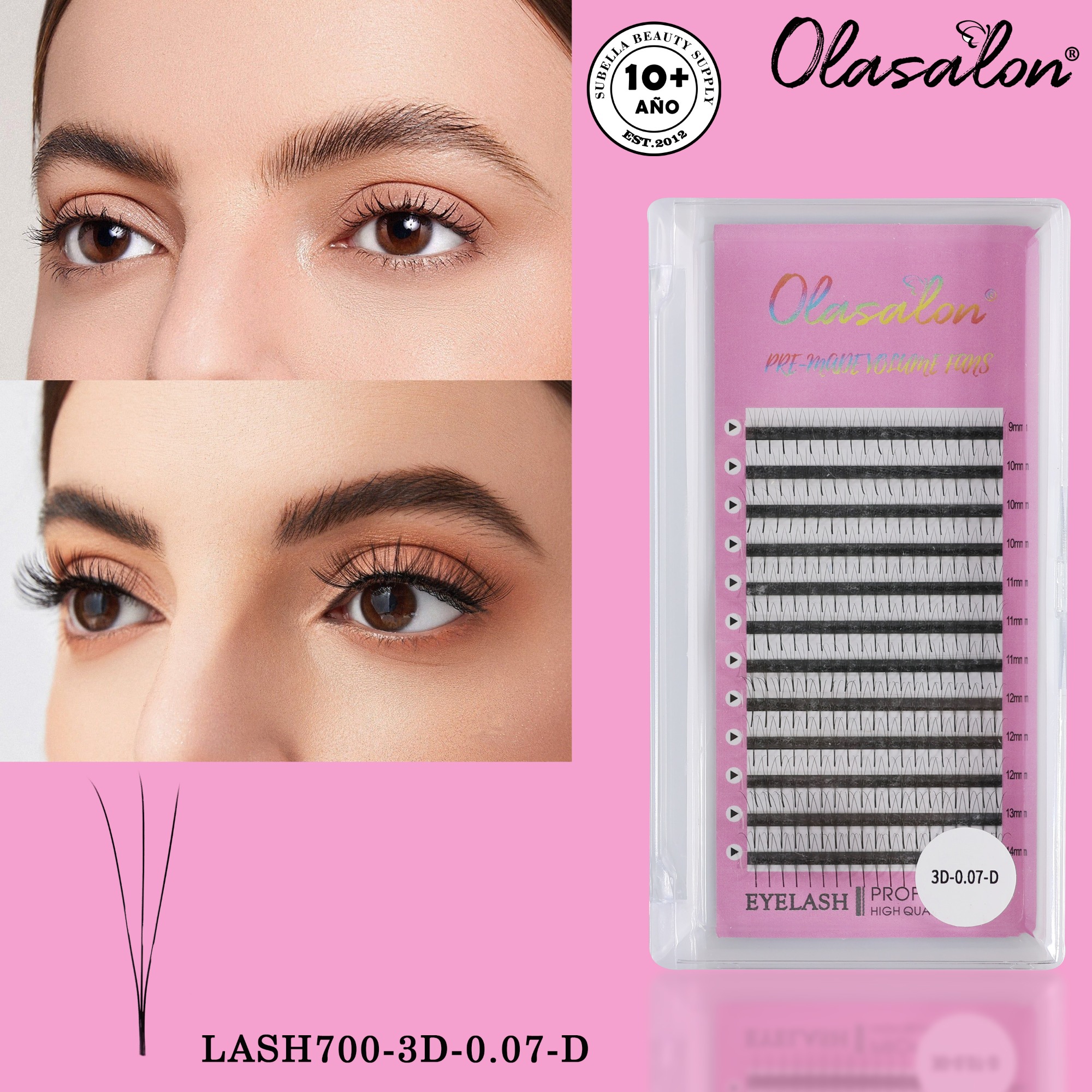 Short Stem: OLASALON premade lash extensions fans 3D 4D 5D 6D, D curl 0.07 thickness.